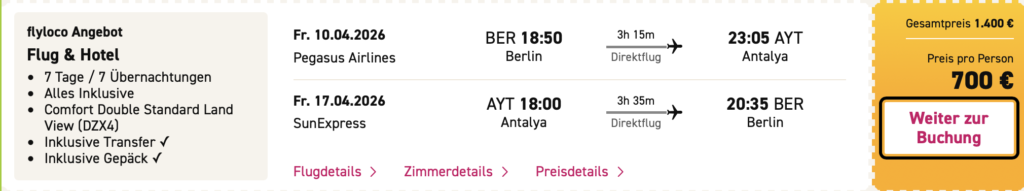 inkl. Direktflug, Transfer & Gepäck